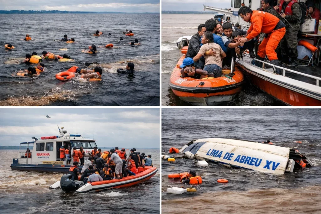 No momento do naufrágio, mais de 70 passageiros foram resgatados com vida por equipes que atuaram rapidamente no local.  Inicialmente, as autoridades trabalhavam com sete pessoas desaparecidas, mas após a localização e identificação do corpo do cantor gospel Fernando Grandêz, de 39 anos, na segunda-feira (16), o número foi revisado para cinco.