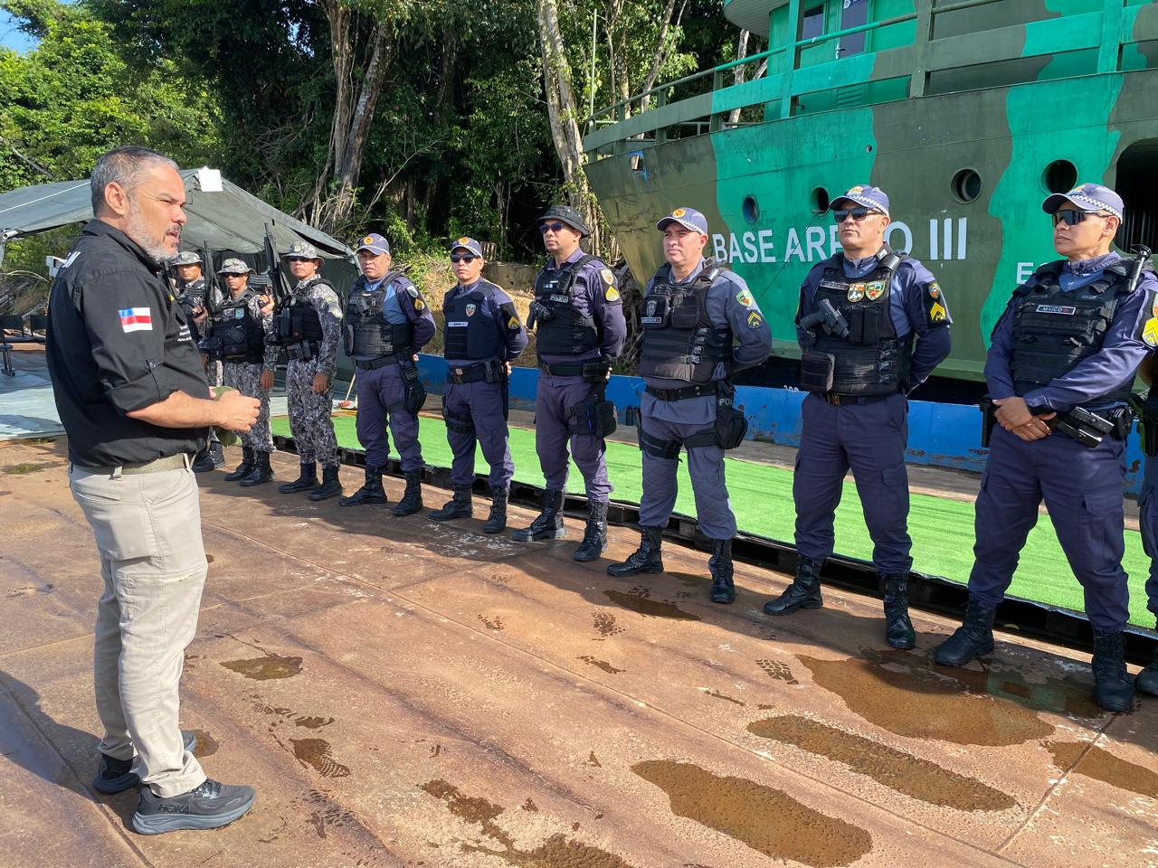 Entre os dias 13 e 14 de março, o secretário da SSP-AM, coronel Vinícius Almeida, visitou três das cinco bases fluviais: a Arpão 3, no rio Negro, em Barcelos; a base Tiradentes, em Jutaí; e a Arpão 2, nas proximidades de Coari, no rio Solimões. Durante as visitas, o secretário destacou os resultados das operações e agradeceu o empenho das equipes envolvidas.