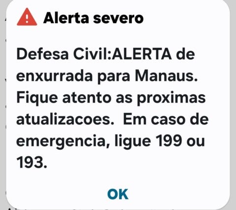 Avisos foram enviados aos celulares da população ao longo deste sábado (29), diante do risco