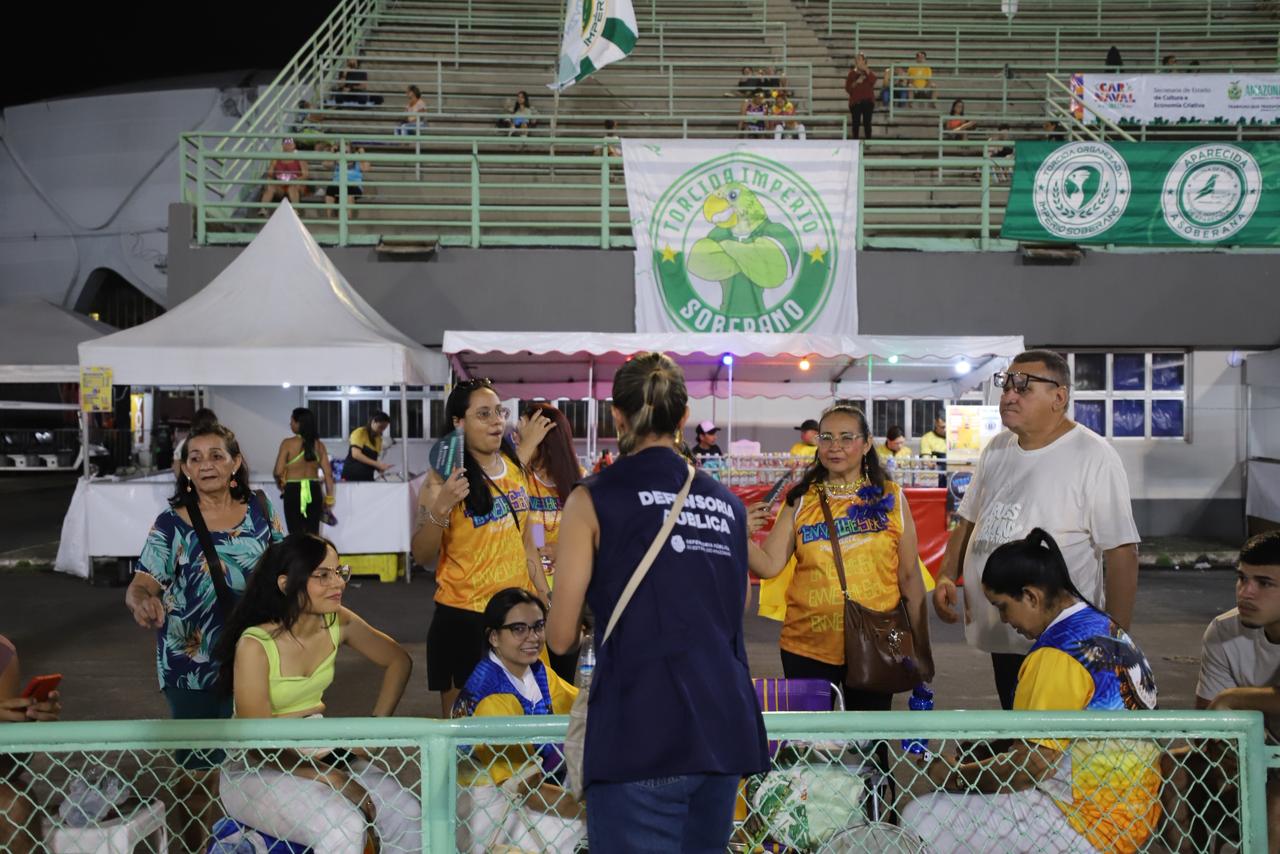O público que acompanhou os desfiles do Grupo Especial no Sambódromo de Manaus, na noite deste sábado (14), também teve acesso a informações sobre direitos, denúncias e proteção legal. A ação “Defensoria na Avenida” levou orientação direta aos foliões, com foco em prevenção de crimes e acesso a serviços gratuitos de assistência jurídica.