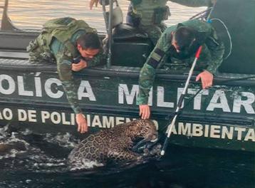 Uma onça-pintada com ferimentos graves foi resgatada pela Polícia Militar do Amazonas (PMAM), na tarde da última quarta-feira (1º/10), após ser encontrada exausta e ferida na região da cabeça em uma área ribeirinha do Rio Negro. O animal apresentava sinais de cansaço extremo enquanto tentava nadar para sobreviver.