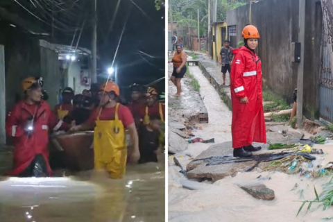 Moradores relataram perdas e dificuldades após o alagamento. A merendeira Rute de Souza, de 45 anos, descreveu a situação ao chegar em casa. “Eu me desesperei, tentei tirar a água e não consegui. Quando cheguei, já estava tudo alagado. Mas fomos acolhidos na escola e estamos recebendo apoio”, relatou.